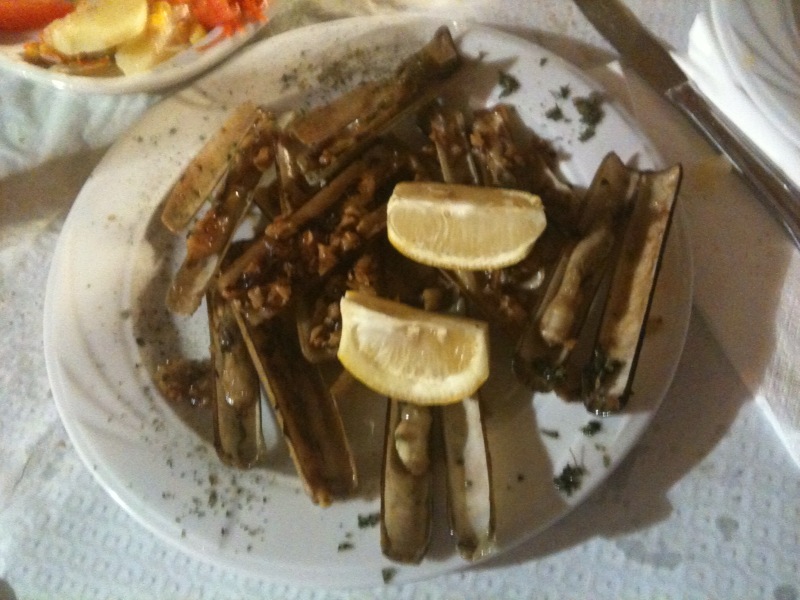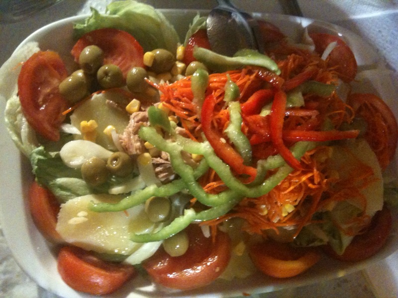 Nosotros concretamente pudimos probar, la ensalada de la casa, bastante completa, pastel de cabracho, con un cesto repleto de panecillos, no soporto que te los den contados, media de croquetas caseras, muy buenas, chipirones afogaos (muy salados para mi gusto), navajas, y de postre una especie de tarta de la abuela, que estaba deliciosa. No penséis en la tarta de la abuela de siempre, ya que se trataba de una especie de tarta de queso de dos pisos, uno de flan o similar y otro de chocolate. Cuesta explicarlo la verdad, pero muy rica.