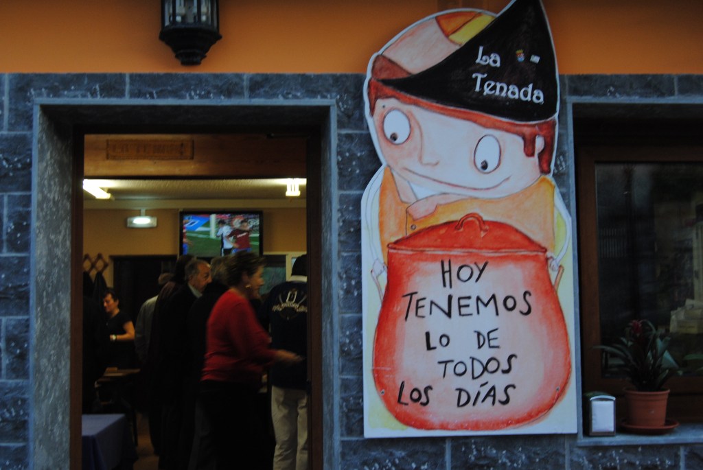 Antes de comenzar con el menú cabe destacar que la Tenada es uno de los sitios de reunión de «La Cofradía del Colesterol», con la que nos encontramos en esta ocasión. Esta asociación gastronómica es una de las más importantes de nuestra tierra, dedicándose a potenciar los productos y platos que siendo tradicionales son sanos por su aporte del llamado colesterol bueno.