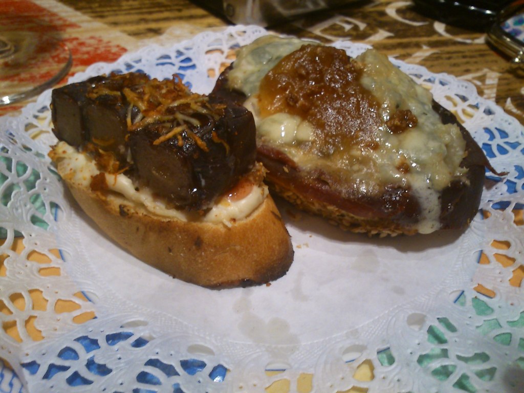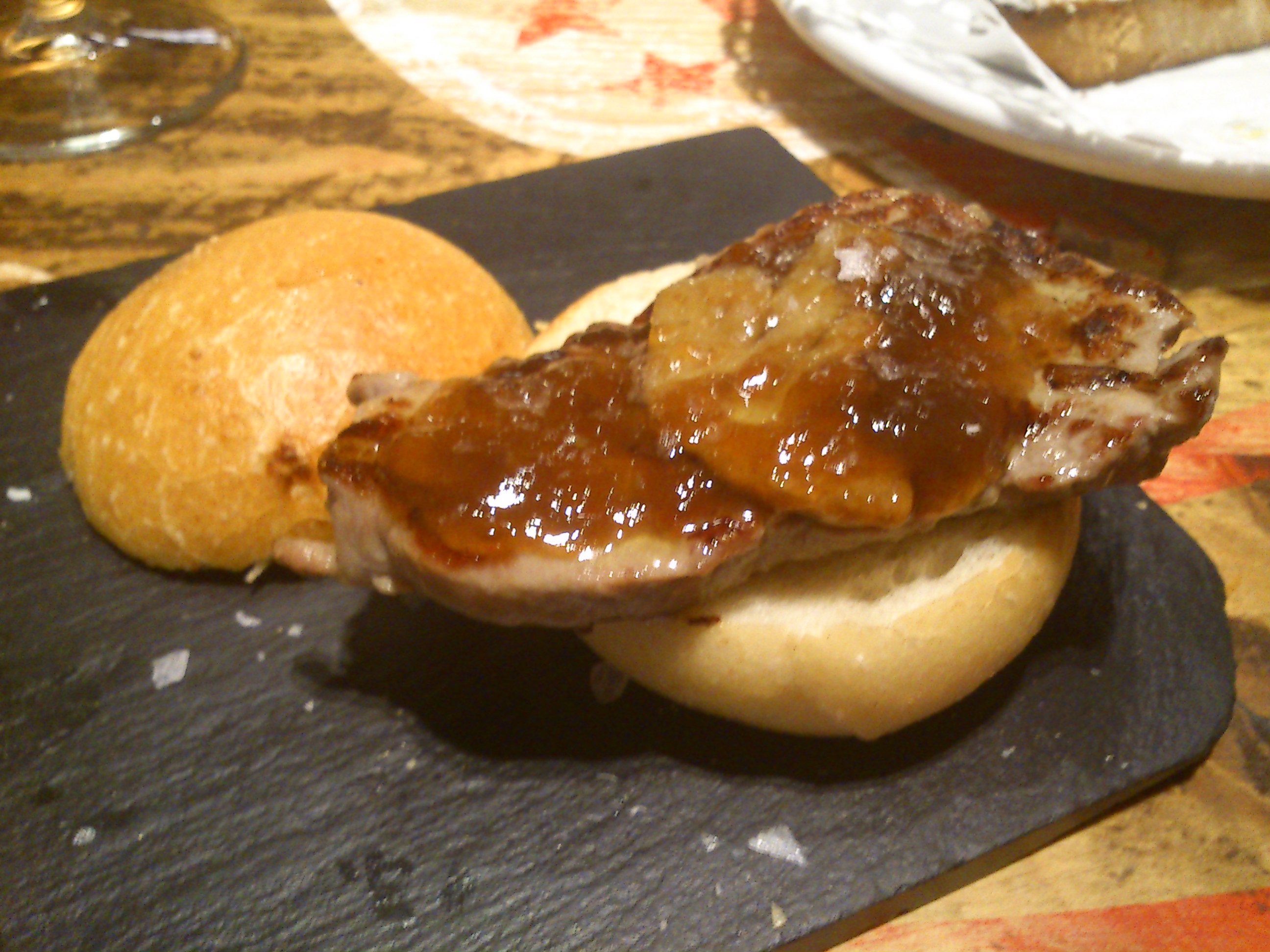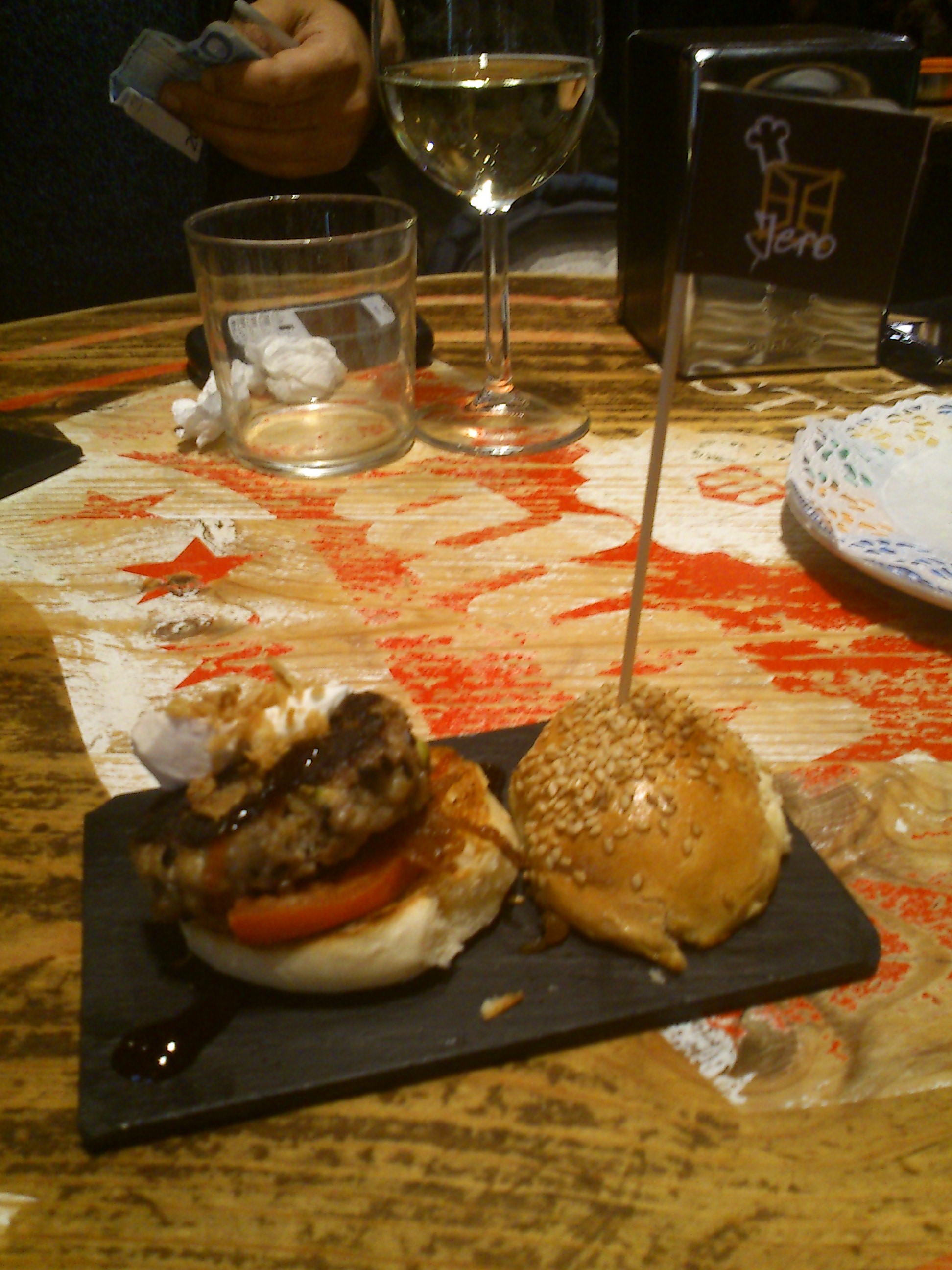 La primera parada fue el restaurante Jero en la calle Correos 11, en boca de sus propietarios, gastronomía en miniatura. En este pudimos probar, cecina con manzana boletus y roquefort, foie con PX, rollito de cecina con membrillo, emmental, y cebolla caramelizada, mini hamburguesa y montadito de solomillo con foie. Todos ellos fabulosos. El local no es muy grande, pero si no vas a la hora punta puedes hacerte un hueco. Tiene una barra en el exterior para los fumadores y poco frioleros, y dispone también de restaurante. Está muy bien decorado y tienes muchos pinchos para elegir, muchos de ellos en la barra para poder comer con la vista. La mayoría de ellos son tipo montadito, con base de pan y con nombres originales, como Zapatero, Messi, Misión Imposible,… .
