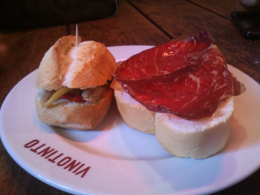 A continuación nos acercamos a la parrilla Vinotinto, en la calle Campanas 4. Un restaurante con amplios comedores, terraza y una zona de pinchoteo para estar de pie bastante amplia. En este tomamos un pincho de ventresca, tosta de cecina, unos huevos matanceros con jijas y un pincho de lechazo a la parrilla. Todo bien, pero nada especial. Tiene una amplia carta de vinos y de raciones de embutido, morcilla, revuelto de bacalao, quesos, etc… Los precios oscilan desde los 1,50 a las raciones de 4,50 y más.