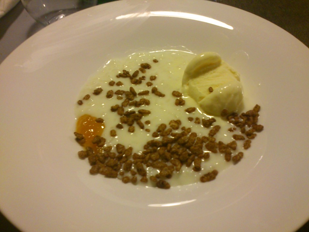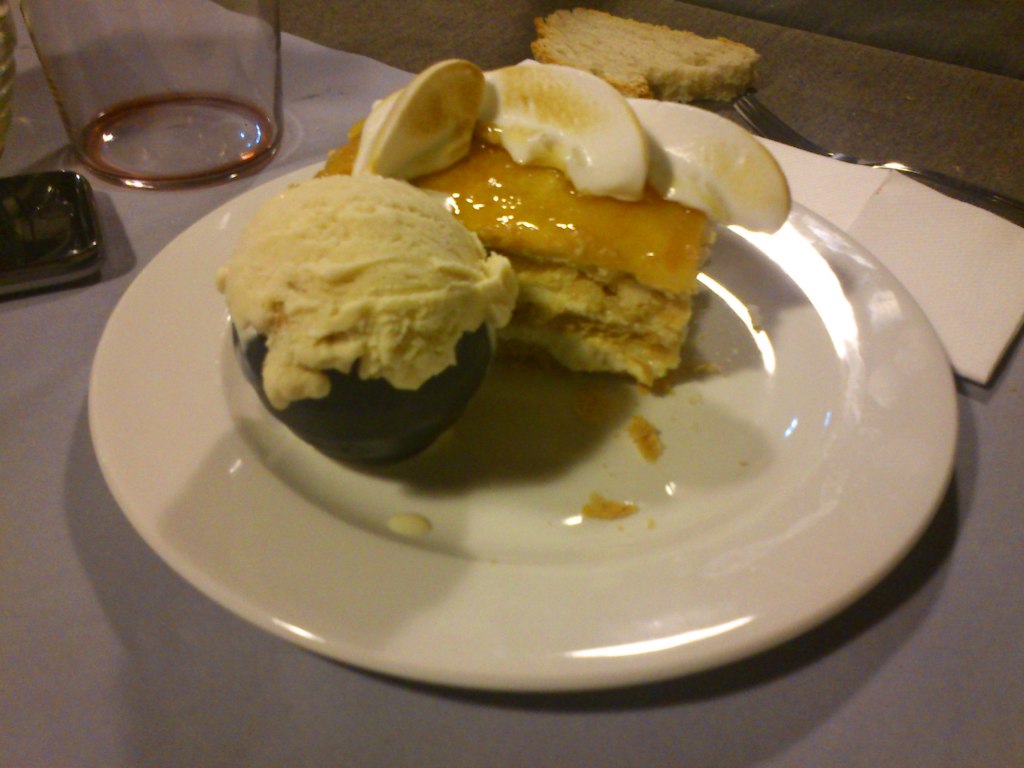 De postre personalmente probé el arroz con leche, servido con helado de mantecado. Creo que es de thermomix, al igual que la tarta tres chocolates. Si no es así, el sabor es el mismo, rico. El único postre que no gusto es la tarta de avellana y cremoso de limón, muy acido el sabor a limón, llegando a ser desagradable.