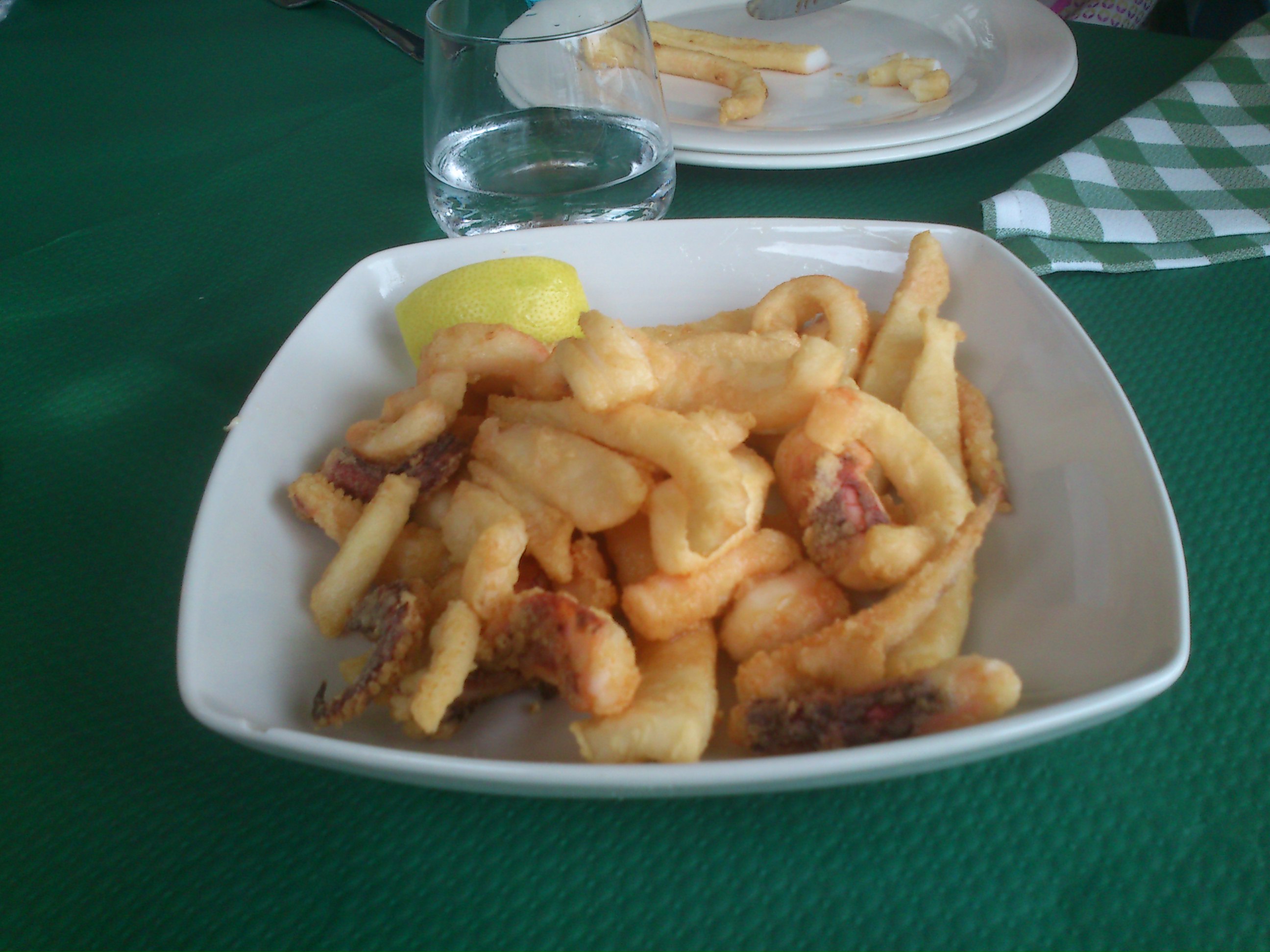 En nuestra visita pedimos de entrantes unos fritos de pixín y unos calamares. En ambos casos muy buenos. De principal teníamos un arroz marinero para cinco, con andaricas, gambas y almejas. Estaba realmente bueno, de sabor intenso y en su punto, ni muy suelto ni muy meloso, y los bichos que decimos por aquí, también muy buenos. A mi personal mente me gustaron las almejas, por las que no suelo apostar mucho cuando como fuera.