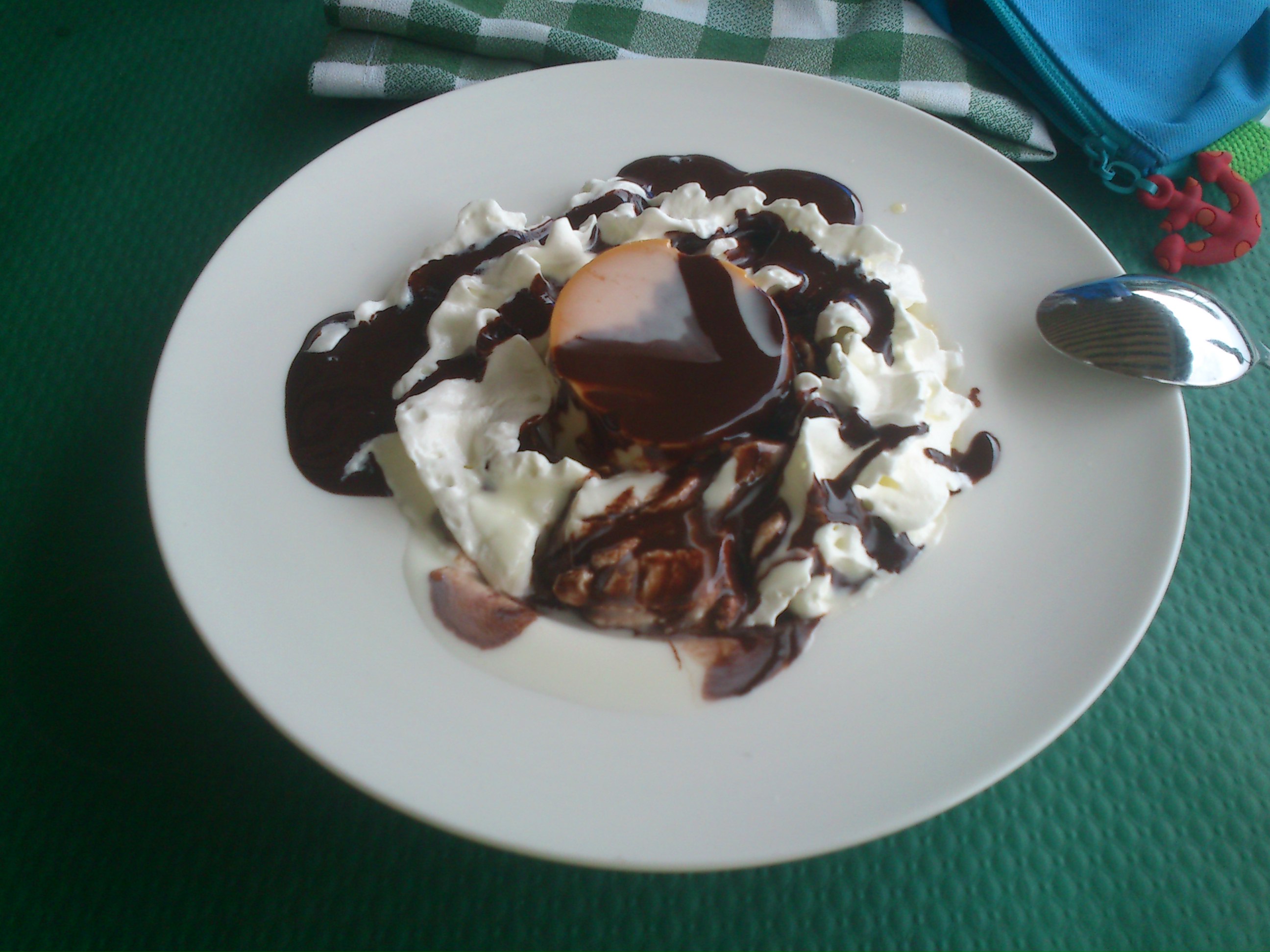 De postre tome un flan de chocolate blanco, muy rico, pensado para los amantes del dulce más dulce que puedas imaginar.