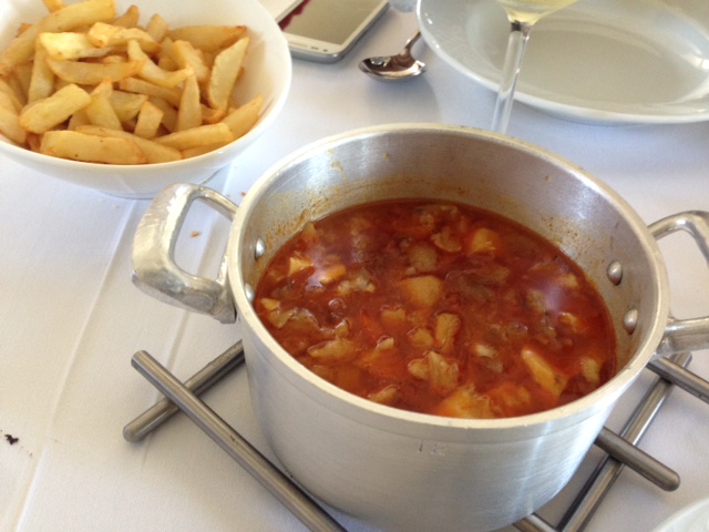 Todo esto con una botella de Protos Verdejo, agua y pan, por unos 190 € para 6 adultos y dos niños. Nos invitaron a dos copas de Pedro Ximenez y a un café, así como a un plato de pollo a la plancha con patatas para un niño pequeño. Relación calidad precio buena, y servicio e instalaciones perfectas.