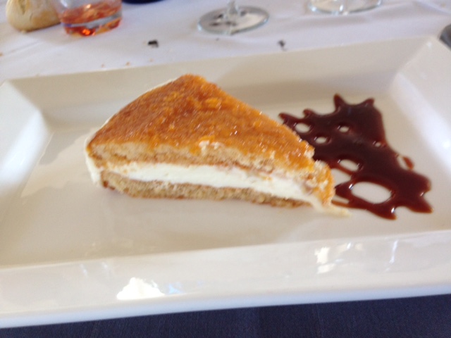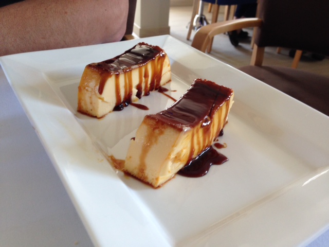 Continuamos con los postres, todos ellos caseros. Le pude pasar la cucharilla a casi toda la carta, Helados variados muy cremoso; arroz con leche perfecto aunque demasiado requemao; tarta de chocolate muy buena; tarta de San Luis, de nata, con base de bizcocho y techo de crujiente bizcocho con yema de huevo requemada, ni fu ni fa; tarta de queso fresco con queso crema y mermelada casera, sabor muy suave, muy buena; tarta de queso al horno mas tipo flan, correcta; y tarta Mariñana tipo pudín, sobre una base de galleta y almendra, con merengue al horno, y servido con helado de vainilla, y chocolate líquido, bien pero no me sedujo.