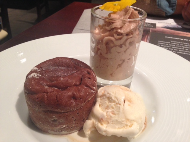 De postre como no podía ser de otra forma nos quedamos con el postre de moda en el 80% de restaurantes, el coulant de chocolate con praliné de avellana y helado de vainilla. Muy bueno todo, aunque al coulant le faltaba un pelín de cocción. Por cierto tienen Bombón de la Ibense…:)