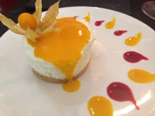 De postre probamos la tarta de queso fresco y el coulant de chocolate con helado. En ambos casos tanto el recubrimiento de la tarta como el helado era de maracuyá, y a mí personalmente, donde no soy muy fan, me resulto muy fuerte de sabor, pero bien.