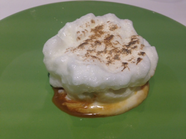 De postre, estuve a punto de tomar el arroz con leche, pero quise probar algo nuevo y me decidí por uno de sus Cocteles dulces, Silver Gin Fizz, una espuma de ginebra sobre un helado de mantequilla de limón y crema de limón, muy rico y refrescante.