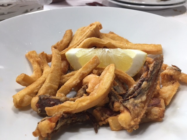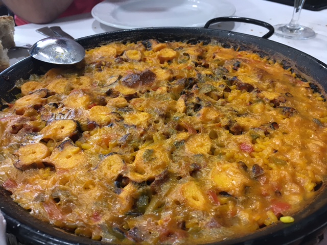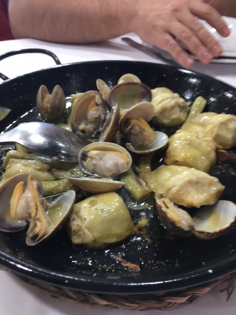 En nuestra visita íbamos aconsejados y con la recomendación de probar el arroz, y así hicimos, no sin antes pedir un par de entrantes para hacer boca. En concreto pudimos tomar unos calamares frescos a la romana, deliciosos, y unas alcachofas con almejas también muy ricas. En cuanto a los arroces optamos por probar dos, el de oricios y pulpo y el negro con calamares. Tiene más fama el primero, pero a todos nos gustó mucho más el arroz negro. Deliciosos ambos. Para acompañar optamos por un D.O. Rias Baixas, Albariño Do Ferreiro, muy rico para acompañar los arroces.