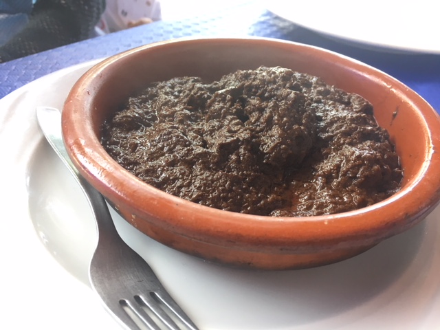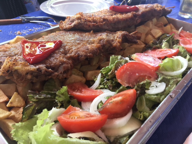 Para comer pedimos una matachana y unos pimientos para picar, y un par de raciones de fabada y dos cachopos para comer. Matachana y pimientos, nada que comentar, correctos. La fabada estaba bien, aunque la ración es pequeña y tampoco es una fabada de escándalo. Los cachopos grandes, acompañados de patatas fritas y ensalada. No solo vienen rellenos de jamón y queso, también pimientos y champiñones, cosa que a mí me sobra siempre que los pruebo.