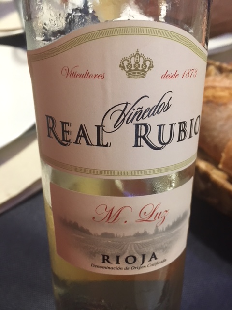 Para beber además de agua, tomamos una botella de vino blanco DOP Rioja Real Rubio M. Luz bastante rico, fresco y afrutado.