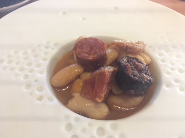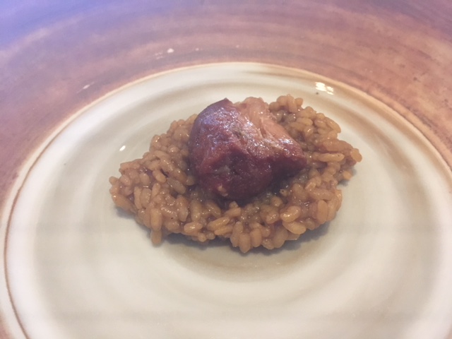 Solo comentaros tres platos. Por un lado Los Solomillos, deliciosa combinación de un tartar de ternera junto con el sabor del bonito. Combinación muy buena. La ventresca de bonito a la brasa, con la piel de la sardina, también un gran acierto; sabor sutil a la brasa, sencillo, pero rico. El colágeno, nabo encurtido y berros, muy bueno también; con anguila y torrezno, y un caldo acompañándolo delicioso. El que menos me gusto, fue para mi sorpresa, el arroz con Pitu. No se porque, pero lo recordaba de otras ocasiones, con un sabor mayor a pitu. No estaba malo, pero no me parecía que estuviera al nivel del resto del menú.