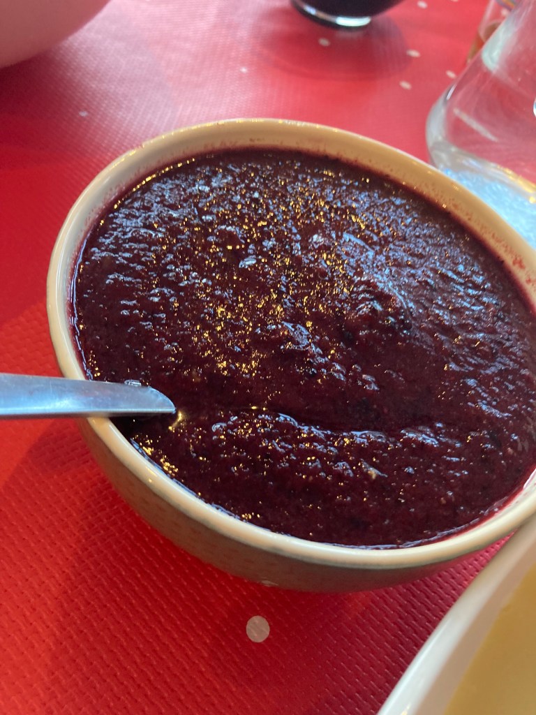 Además del protagonista de la comida y del día, el archiconocido pavo, hay una serie de platos que acompañan siempre esta velada. El cine nos ha acercado en numerosas ocasiones esa imagen de una familia entorno a una mesa, en la que se dedican a pasarse platos continuamente, como si se tratara de una gymkana, y yo siempre me preguntaba que sería aquello que servían cual argamasa con un cucharón enorme, pues hoy voy a empezar hablándoos de algunos de esas guarniciones, que no pueden faltar en una mesa de acción de gracias. Hoy empezamos por las dos salsas principales, la salsa gravy, o salsa de pavo, y la salsa de arándanos.