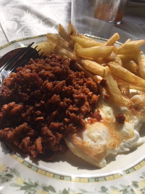 Nosotros en nuestra visita optamos por probar unas croquetas caseras de entrante y luego unos callos. Las croquetas de jamón, ricas, nada espectacular, pero bien. Los callos, acompañados de patatas fritas, estaban bien, pero no me entusiasmaron, a pesar de ser uno de los platos por los que son más conocidos. Para mi gusto personal, les faltaba un golpe de sabor. Pude probar también el solomillo al café Paris, que estaba bueno, pero a quien lo pidió no le gustó. En este caso resulto curioso que, no siendo expertos en solomillos, nos recordaba más a carne de cerdo que de ternera, lo cual comentamos, y nos aseguraron que se trataba de carne de ternera. Lo que si es cierto, es que quizá la forma de servirlo y las características de la carne podían llevar a confusión. Servir un solomillo de ternera asturiana, con la salsa estilo café Paris, pudiera parecer hacer de menos a la carne, ya que la salsa podría enmascarar el sabor de una carne de calidad. No quiero decir con esto que estuviera mal ni mucho menos, pero parece que un buen solomillo pide una plancha y algo más sencillo, que resalte su sabor natural. A pesar de todo, el plato estaba bueno y bien elaborado, tan solo que no gusto a quien lo pidió. A la hora de pagar no nos lo cobraron a pesar de insistirles. Realmente no es culpa de ellos que no le gustase el plato, por lo que fue un detalle muy destacable por su parte. Practicas así, ya no se encuentran, y marca muy bien el nivel de un restaurante. También pude picotear el picadillo, que estaba realmente rico, acompañado de patatas y huevos.