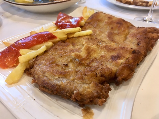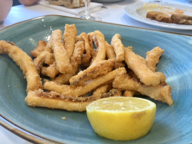 Para compartir y como entrantes pude probar las croquetas, bastante ricas, muy cremosas, los calamares, como siempre deliciosos, y el cachopo, bastante bueno, carne tierna, pero poco hecho. En cuanto al arroz, optamos por el marinero, con calamares, almejas y langostinos. Estaba delicioso, no se puede decir más, con ese puntito de socarrat tan bueno.