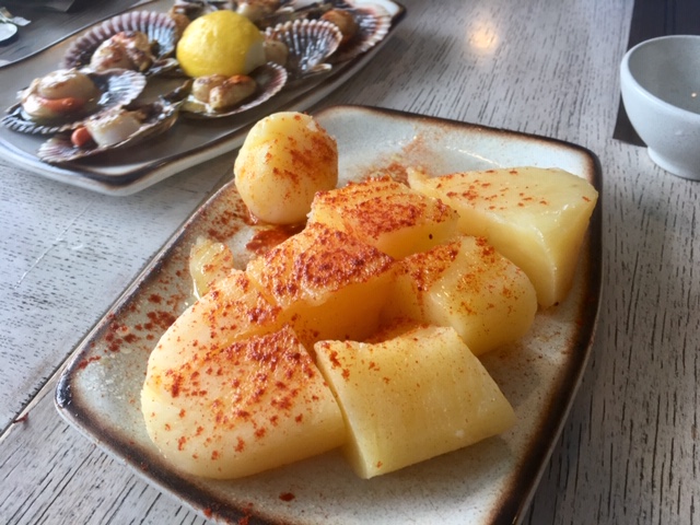 Nosotros en nuestra visita, tuvimos la ocasión de probar varias cosas, concretamente, pulpo, cachelos, zamburiñas y raxo. Raciones curiosas y todo ello estaba bastante correcto de sabor, pero nada que no se pueda tomar en otros restaurantes gallegos. Para beber una jarra de Ribeiro fresquito que entraba solo.