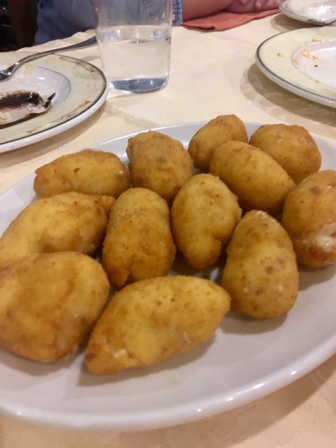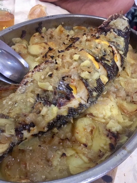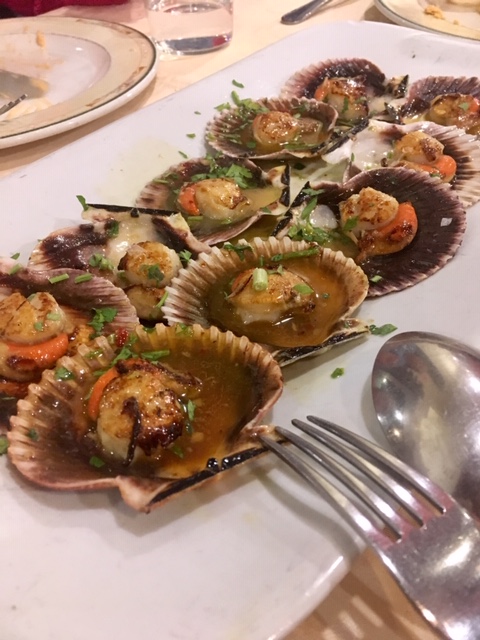 En nuestra visita, nos comentaron los pescados que tenían, y optamos por una lubina salvaje, preparada al horno. Muy rica, aunque quizá le faltaba un punto de sal. Acompañada de cebolla y patata panadera. Unos pimientos por encima le hubiera dado un toque, que a mi personalmente, creo que le alegra un montón a este tipo de pescados al horno. También tuve la ocasión de probar las zamburiñas, ricas, y el pastel de cabracho, bastante correcto así como las croquetas, bastante ricas.