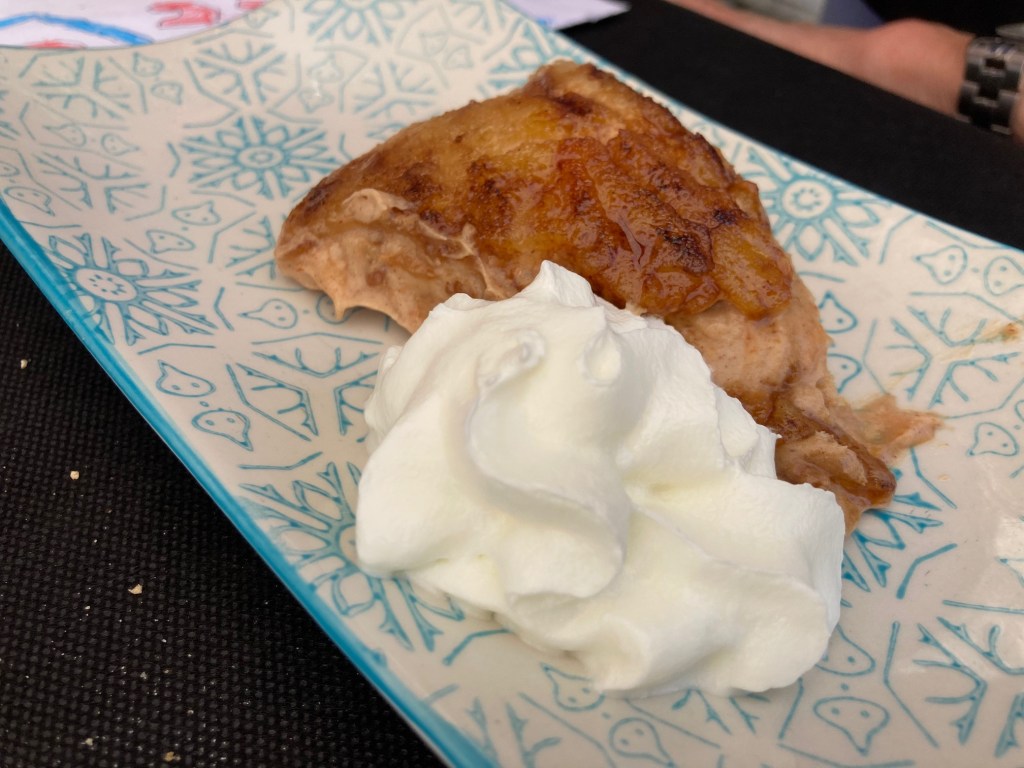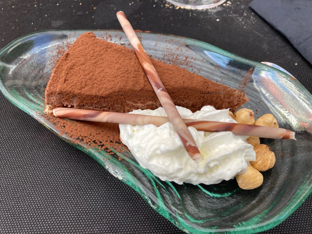 De postre probé la tarta Piloña de chocolate y avellana, rico pero nada especial, una especie de mus con unas avellanas y la tarta de queso una especie de quesada con base de galleta que no estaba especialmente buena. La tarta Tatin y la Solana de turrón correctas.