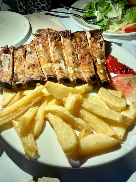 Carta clásica de merendero no muy amplia, sin complicaciones, tortilla, croquetas, calamares, pollo al ajillo, cachopo, e incluso pizzas, aprovechando que también tienen parrilla de leña. En este punto también los clásicos, costillas, matachana, entrecot, pollo, etc.
