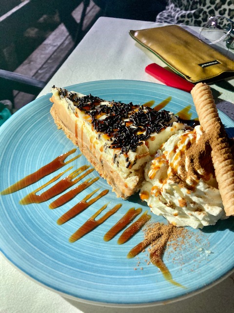 De postre, todo casero, probé el coulant de chocolate acompañado de helado de frambuesa rico, la tarta de plátano, con un toque de dulce de leche, rica, nada empalagosa lo cual siendo de plátano se agradece. El arroz con leche requemao correcto.