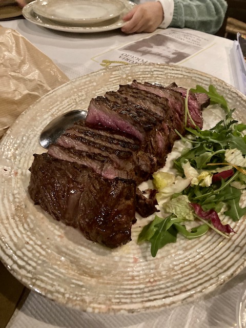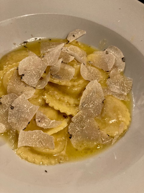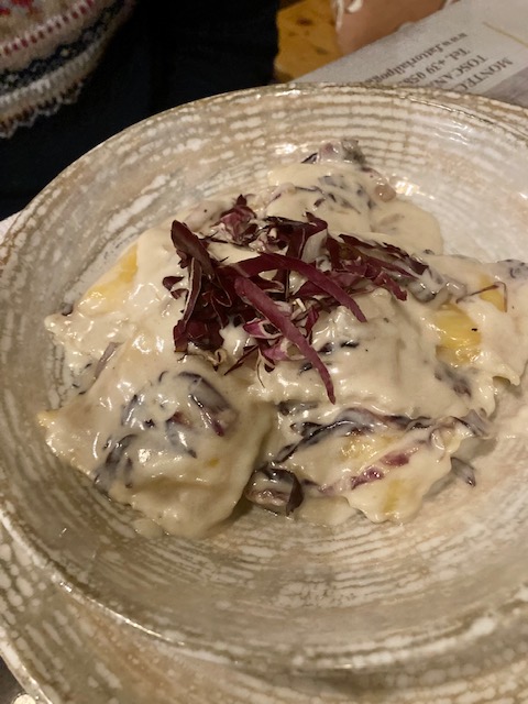 De entrante pappa, ligeramente templada, muy rica o las conocidas fiori di zucca, flores de calabaza rellenas de queso, realmente ricas y sencillas, unos tortellini con trufa o unos deliciosos gnocchis. Cocina italiana sencilla pero cuidada y acompañado de un rico vino tinto Montecarlo Rosso Vigna del Greppo.
