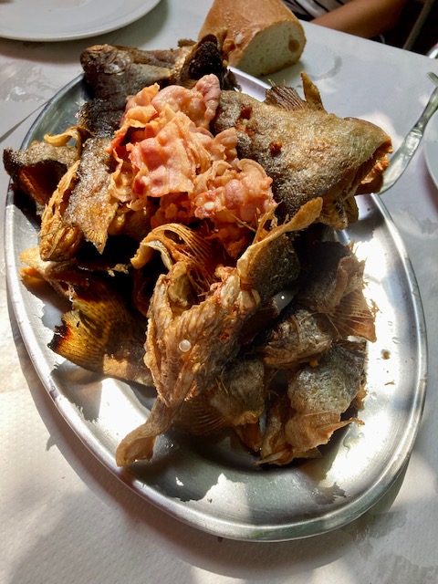 El precio de las truchas es de 18 €/kg por lo que, más o menos, y teniendo en cuenta el tamaño de las truchas que pesquéis, un par de ellas por cabeza suele ser suficiente. También depende de lo que os gusten o si hay niños, normalmente más reticentes con el pescado, aunque esta realmente bueno. Trucha asalmonada super crujiente, donde puedes comerte la piel y las espinas si quieres.