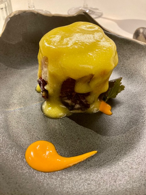 Además de la carta, dos menús, el denominado largo y estrecho de 95 € (120 € con maridaje) y el menú tradición de 55 € (75 € con maridaje) que pudimos disfrutar en nuestra visita.