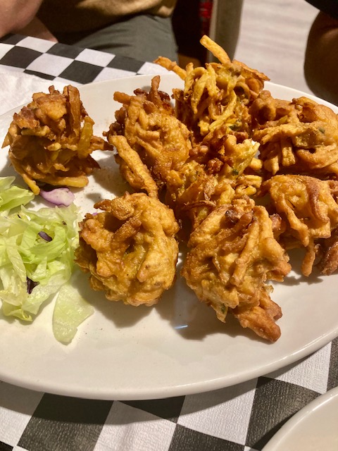También un imprescindible son las vegetable pakooras, unos buñuelos de verduras con harina de garbanzo o lentejas y con especias (cúrcuma y semillas de cilantro y comino molido); acompañadas con chutneys de menta y de mango. Nosotros las pedimos y estaban muy ricas.