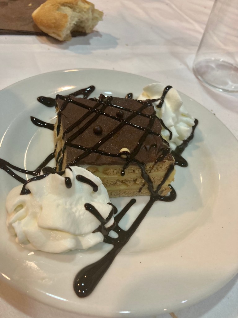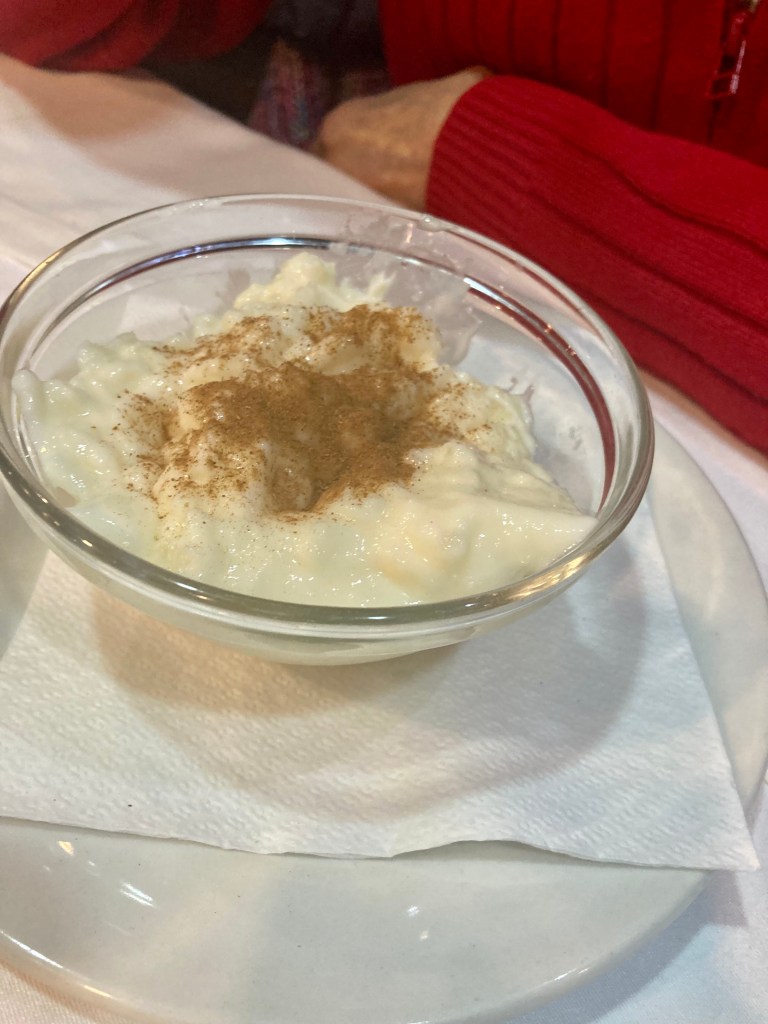 En cuanto a los postres, los correspondientes al menú, un arroz con leche, una tarta de fresa, una de la abuela y tiramisú. Nada del otro mundo, sencillos postres de menú. Para beber, un seco Albariño de Viña Sobreira y sidra DOP el Santu, de la llagar Sidra Canal, que solo escancian en la zona de la barra.