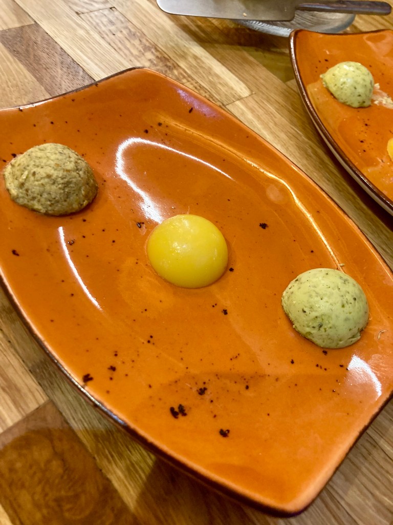 En nuestra visita empezamos probando una variedad de mantequillas cortesía de la casa para continuar con bife de novillo argentino, con sabor suave y con ojo de bife o como dicen los ingleses Ribeye, de Holstein, vaca de origen holandés, con maduración de 30 días, con un sabor más intenso y jugosidad.