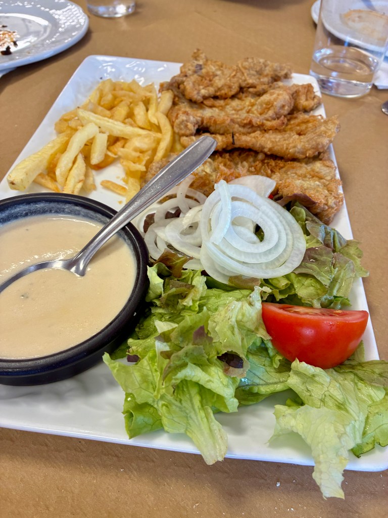 Comenzamos nuestra comida con unas croquetas caseras de jamón, cremosas, sabrosas y con un toque de nuez moscada que no siempre se percibe, pero que aquí marca la diferencia. Le siguió un chorizo criollo con chimichurri y patatas, jugoso y con buen equilibrio de magro y grasa.