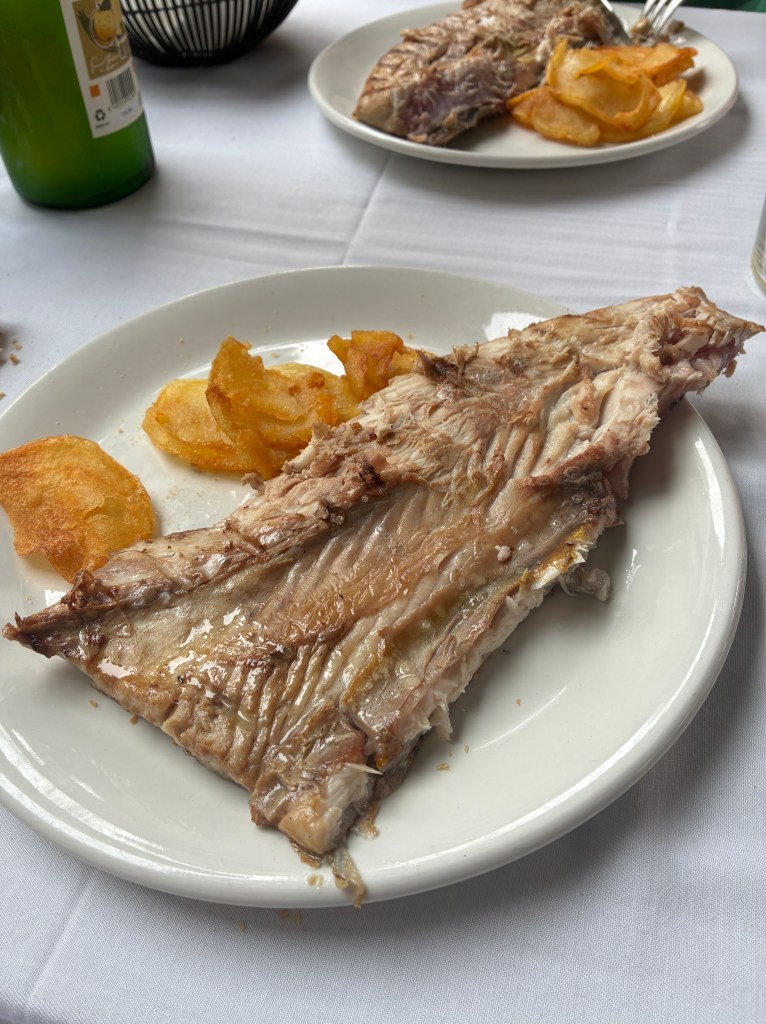 En esta ocasión, el menú comenzó con unos calamares frescos fritos que cumplieron con creces: buena elaboración, rebozado en su punto y ese sabor inconfundible de un producto fresco que no necesita nada más para brillar. Un plato sencillo, pero delicioso. La ventresca de bonito a la plancha, en cambio, me dejó con sensaciones encontradas. La primera pieza estaba correcta, pero la segunda hubo que pasarla un poco más por la plancha. Si bien es cierto que la ventresca es un plato donde el producto manda y la plancha es una preparación clásica, esperaba algo más de intensidad. Quizá la ilusión de probarla en plena temporada jugó en contra de mis expectativas. Tal vez hubiera sido mejor pedirla a la espalda, con un sofrito de ajos, para realzar el sabor y darle un punto más de personalidad. Tampoco la guarnición ayudo a la sensación final.