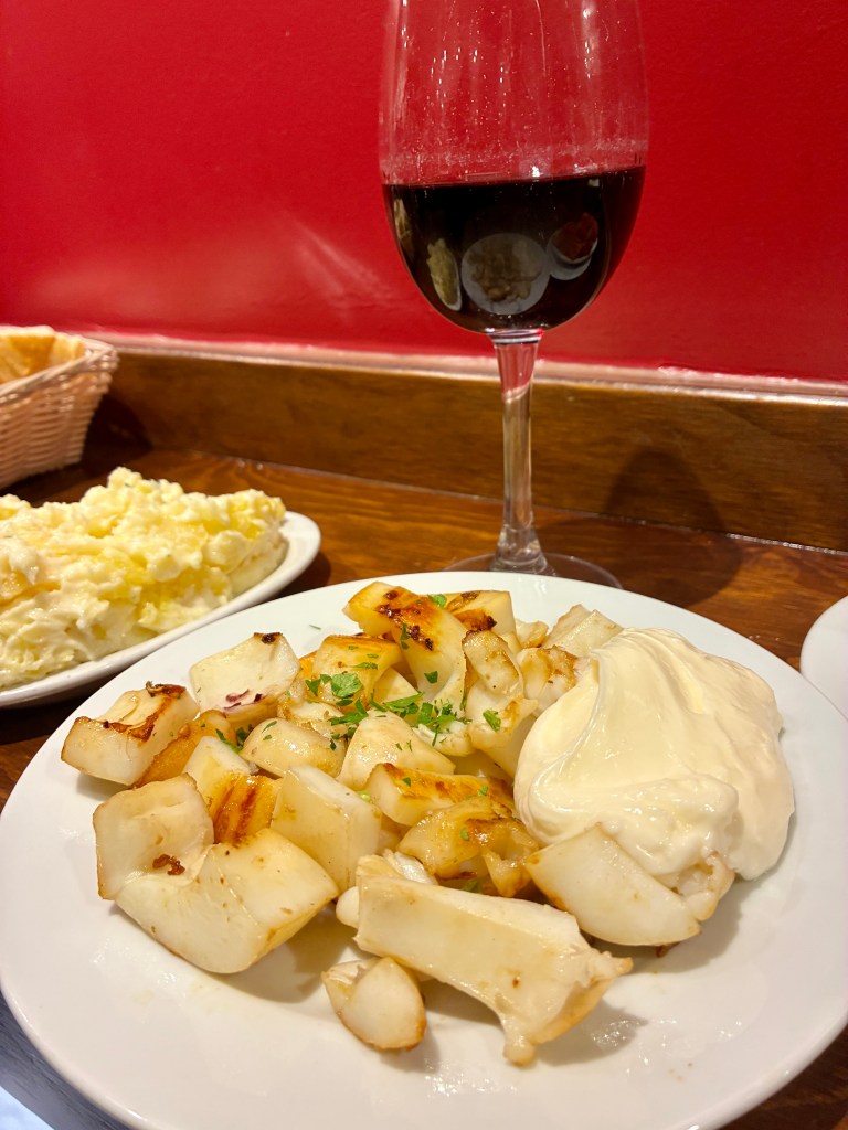 Se trata de todo un clásico de la ciudad, con una carta más amplia que incluye desde patatas alioli o bravas, lacón y pulpo, hasta su estrella indiscutible: la sepia a la plancha. Nosotros optamos por los platos más clásicos. Las patatas alioli me gustaron más que las bravas, que, aunque tenían el punto de picor característico, eran cocidas, y personalmente prefiero que estén fritas. La sepia a la plancha, tierna y sabrosa, sigue siendo sin duda el plato estrella de este local.